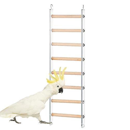 Vogelleiter Kleintier kletterleiter Holzleiter Acryl mit 360° Drehbar Haken, Kletterspielzeug Vogelkäfig-Zubehör für Sittiche & Kakadus (4 Größen)