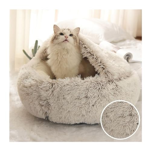 ESHDGFYB Warmes, langes Haustierbett aus Plüsch, geschlossenes rundes Katzenkissen, bequemer Schlafsack, Katzennest, Zwinger for kleine Haustiere(Coffee,50x50cm)