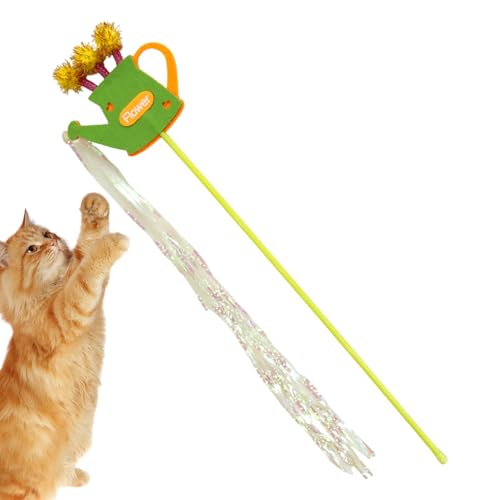 Jubilofex Katzenspielzeug,Bunte Bandangel Mit Federn Zum Spielen Verführen | Federspiel Mit Langen Quasten Band Spielzeug Gegen Langeweile