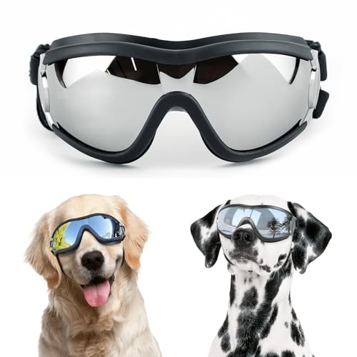 NAMSAN Hundebrille UV-Schutz, Winddicht, Staubdicht, mit Verstellbarem Riemen, für Mittlere bis Große Hunde - Silber