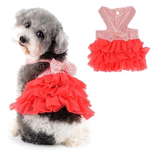 Ranphy Kleiner Hund Katze Rock Chihuahua Kleidung für Mädchen Krone Prinzessin Kleid Puppy Shirt Sommer, Rosa und Weiß