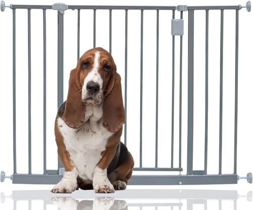 Bettacare Extra Hohes Druckmontierte Premium Haustiergitter, 68.5cm - 75cm, Schiefergrau, Druckmontierte Treppengitter für Hunde, Sicherheitsbarriere, Einfache Montage