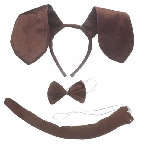 Nishiyuenyi 2 X Hundeohren Stirnband mit Schwanz Und Fliege, Set mit Kopfbedeckung, Tierohren, Stirnband, Kostüm, Haarreif, Hundeohren Und Langer Schwanz für Part