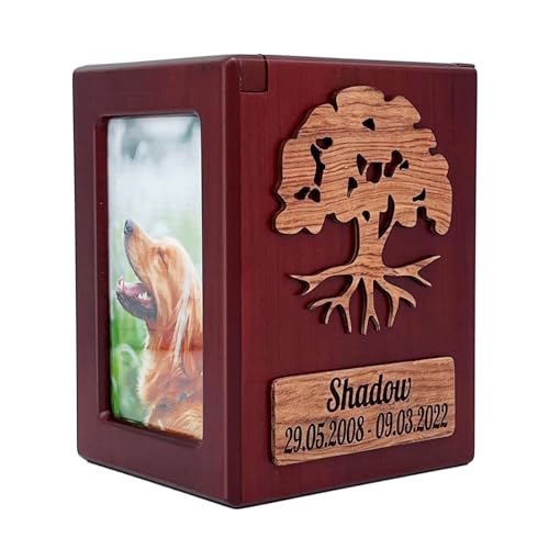 Tarngod Benutzerdefinierter Name und Datum, Haustier-Avatar, Einäscherungsurne für Hunde und Katzen, gravierte Asche für Hunde und Katzen, Andenken-Holzbox