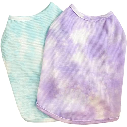 2PCS Blume gedruckte Sommer Hund Shirts für kleines mittleres Haustier T Shirt Mädchen Jungen Kleidung Weich Atmungsaktiv