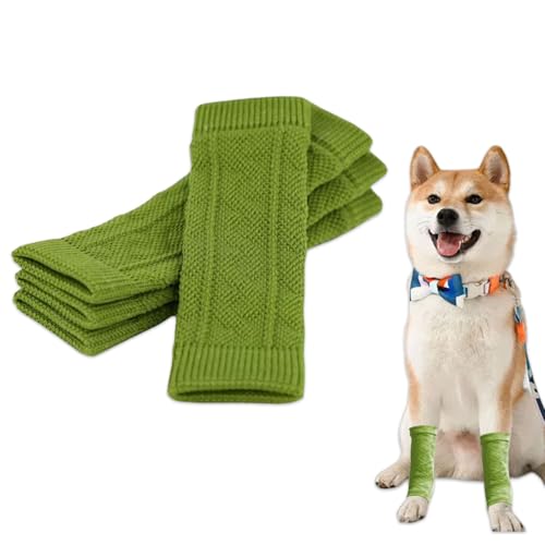 OTKARXUS Hunde-Beinstulpen, niedlicher Bär, Ellenbogenschutz, Winter, weich, warm, gestrickt, für Kätzchen, Welpen, kleine Hunde, Katzen, Grün, Größe L, 4 Stück