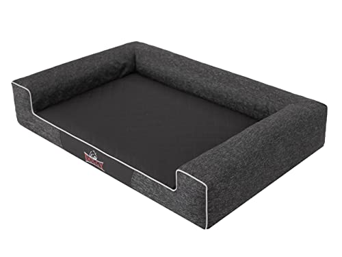 DOGGY Hundebett - Hundekissen für große Hunde - Hundekorb - EInfach zu reinigen - erhöhte Ränder, XL, 114x84 cm, Graphit