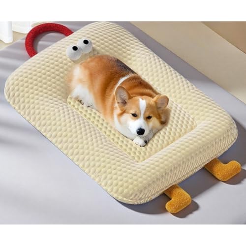 HUAMIAN Kühlmatte für Hunde, atmungsaktiv, Bambus, kühlendes Hundebett mit Kissen und Griff, rutschfeste Unterseite, kühlendes Kissen für Hunde und Katzen für heiße Sommer, drinnen und draußen (Gelb