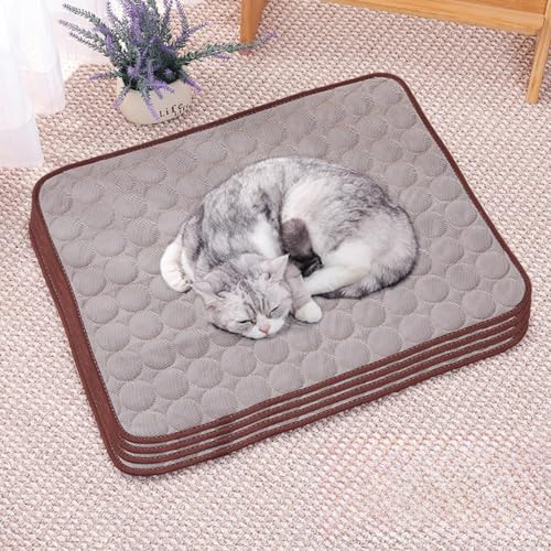 HUAMIAN Kühlmatte für Hunde, sofortiges Kühlkissen für Hunde und Katzen, Eisseidenstoff, doppelseitig, für den Sommer, unverzichtbar für Haustiere, Wärmeentlastung, Braun, 50 x 40 cm, 4 Stück