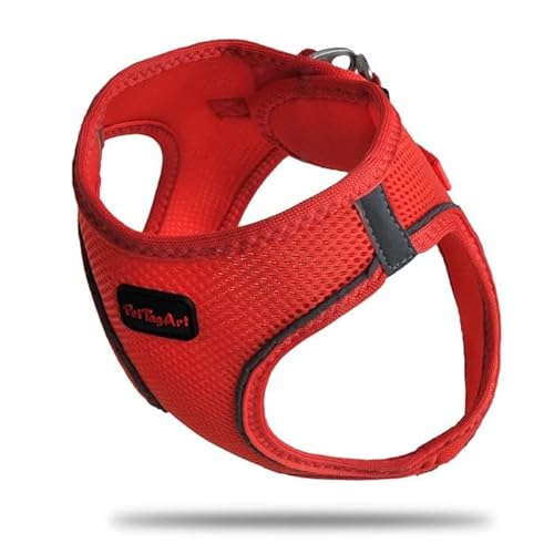 PetTagArt Air Mesh Step-In Hundegeschirr, Hundegeschirr Air Mesh extra leicht & weich in verschiedenen Größen (S, Rot)