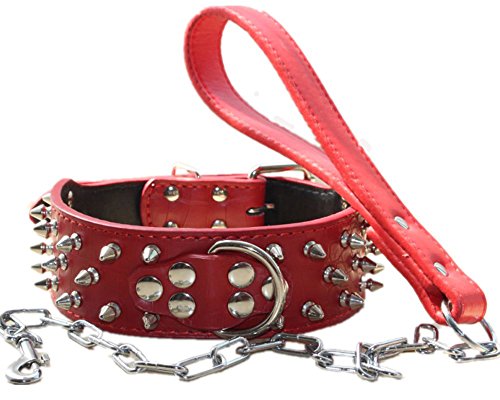 haoyueer Hundehalsband mit spitzen Nieten, 5,1 cm breit, stilvolles Lederhalsband für mittelgroße und große Hunde, Pitbull, Labrador, Boxer Rottweiler, Deutscher Schäferhund, Rot, XL