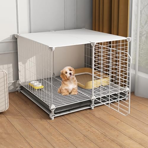 Welpenkiste, Haustierplaypen, Kleiner Hund Caindoor, Welpenzweel, Faltbare Haustierkiste mit Tablett, Innenzwinger/Weiß KeYJ