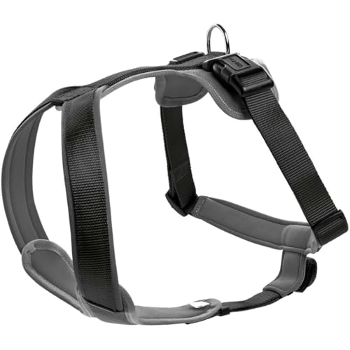 HUNTER Hundegeschirr NEOPREN, Farbe: schwarz/grau, strapazierfähiges Nylon, mit weichem Neopren gepolstert, reflektierendes 3M Scotchlite Reflective Material, pflegeleicht, komfortabel, Größe: L