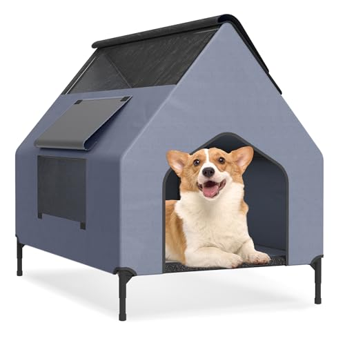 XMTECH Haustierzelt Hundezelt Outdoor Hundeliege überdacht, S - 91x65.5x86.5 cm, wasserabweisendes, kratzfestes Oxford-Material & atmungsaktives Netzgewebe, Katzenhaus