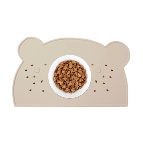 Demsyeq Hundefuttermatte, Haustier-Fütterunterlage mit erhöhten Kanten, rutschfestes, waschbares Silikon-Pad, auslaufsicher, Bärenförmiger Schutz für Indoor-Bodentraining,