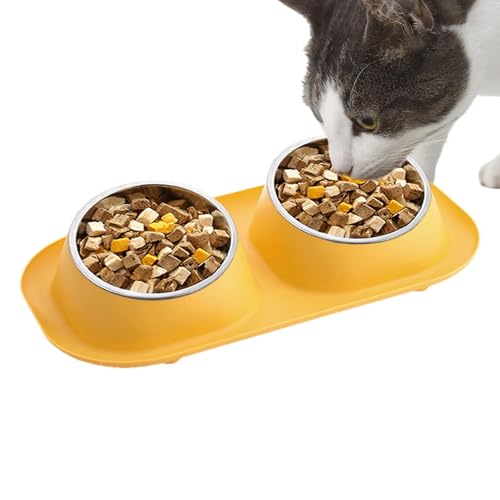 Holdes Doppelter Hundenapf | Doppelter Katzenfutternapf aus Edelstahl | Rutschfeste, doppelte Futter- und Wassernapf für kleine Hunde, Katzen, Hunde und Haustiere