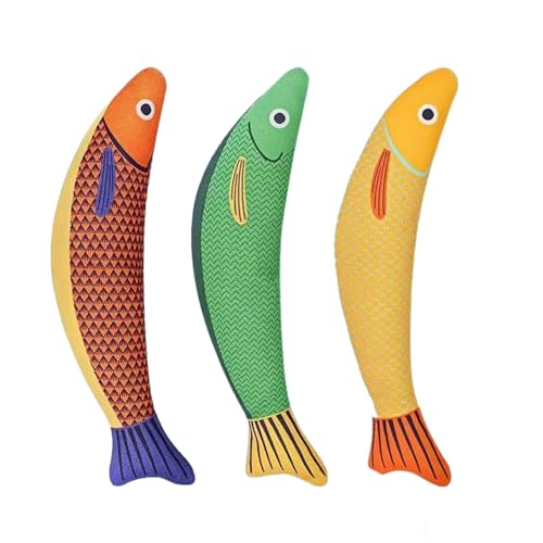 Hitburu Plüschfisch Für Katzen | 3er Set Katzenminze Spielzeuge Für Kitten - Zahnreinigungs-Spielzeug, Tierbegleiter Für Drinnen & Draussen Für Alle Katzengrößen