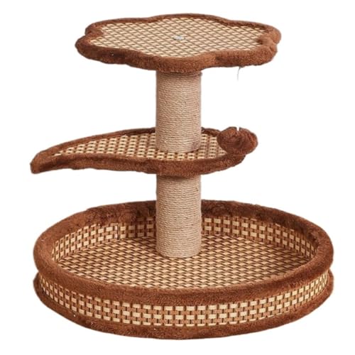 YGDYFDC Katzen Klettern Katzenklettergerüst, Katzennest, Kratzbaum, Integrierte Kleine Sommer-Rattanmatte, Fusselt Nicht, Sisal-Katzenbrett Leicht zu reinigen(Brown)