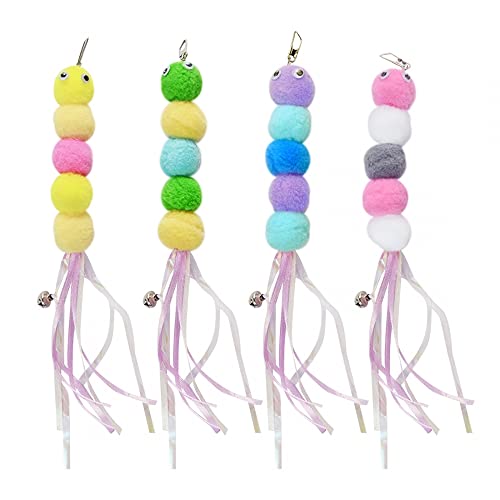DONGKER Katzenangel Ersatzanhänger, 6 Stück Katzenangel Ersatzfedern mit Anhänger Feder Glocke Befestigungen für Kätzchen, Federspielzeug Katzenspielzeug, Interaktive Katzen Spielzeug
