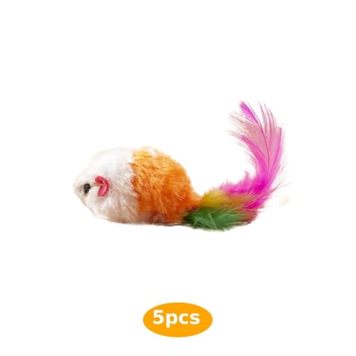 budiniao Stimulierende Katzenspielzeug mit Plüsch für komfortable Spielerlebnisse sanft Geräusch Maus Katzenspielzeugschüttel (5PCs Multi-Farben)