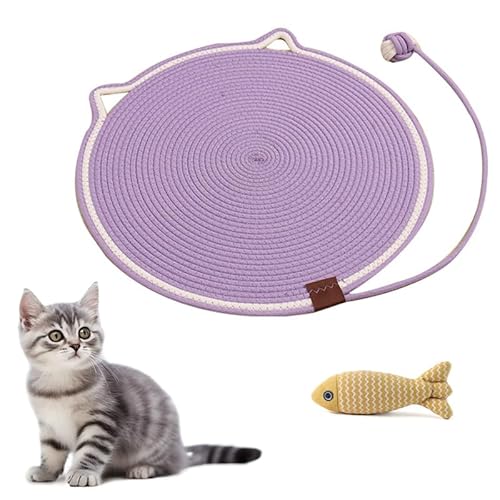 Kratzbrett - Natürliches Baumwollseil Kratzpad, doppelseitige Katzenmatte mit Katzenspielzeug, langlebig und leicht zu reinigen, schützt Möbel (lila, 35 cm)