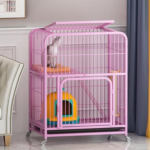 Großer Katzenkäfig für den Innenbereich, Metalldraht, Zwinger für Kätzchen, Meerschweinchen und Kleintiere, ideal für 1–4 Katzen (Rosa, dritte Etage)