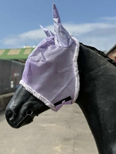 Fliegenmaske Pferd mit Ohrenschutz, UV-Schutznetz, Fleece-Rand Comfort Fit Silber und Levender (Levender, Pony)