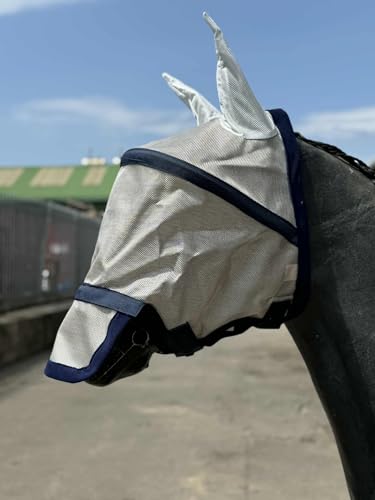 Fliegenmaske Pferd mit Ohrenschutz, UV-Schutznetz, Fleece-Rand, Comfort Fit Silber und Levender (Silber, Cob)