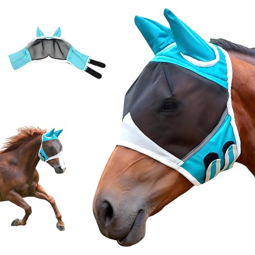 Pferde Fliegenmaske Atmungsaktive Mesh Fliegenschutz Pferd mit Ohrenschutz UV-Schutz Fliegenmaske weich Elastisch Horse Fly Mask Für Sommer