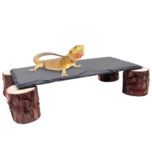 MHLLGN Bartdrache Sonnenplattform Schiefer Felsen für Reptilien mit Holzflor Leopard Gecko Felle und Höhlen Reptilienpanzer Zubehör für Bartagamen, Geckos, Kugelpythons, Schildkröte