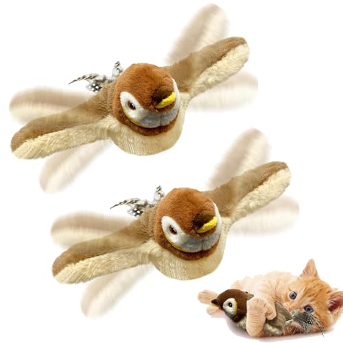 Donubiiu Interaktives Piepsendes Vogelspielzeug FüR Katzen,2025 Neu Interaktives Katzenspielzeug Fliegender Vogel Katzenspielzeug Vogel Fliegt Elektrisch (Spatz*2)