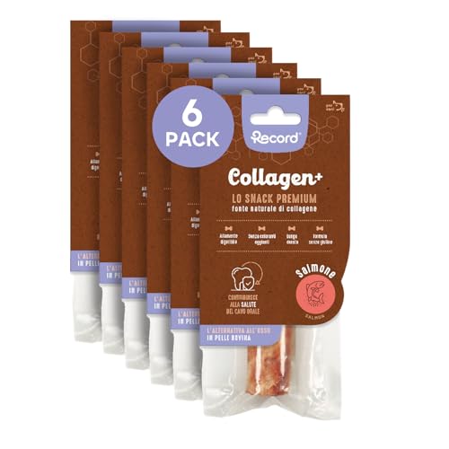 Record - Premium Hundesnack Collagen+ Lachsgeschmack mit hohem Proteinwert kollagenreiche Hunde Kausnack ohne Farbstoffe 6 Beutel à 50 g | (M)