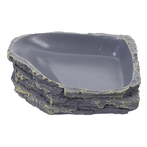 1Stück Reptilienfutter und Wasserschale aus Langlebigem Harz Naturnahe Fütterungsplatte für Gecko Schildkröte und Andere Reptilien Dunkelgrau