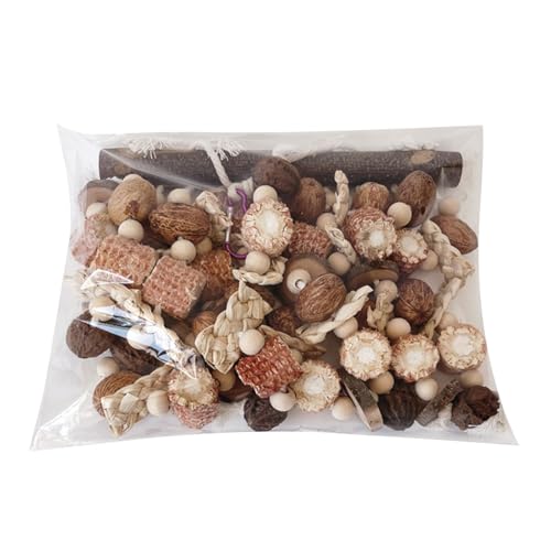 Geeignet zum Aufhängen in Vogelkäfigen oder Volieren, das Papageienspielzeug aus Holz bietet eine stimulierende Umgebung, die körperliche Bewegung und geistige Stimulation für Ihren Vogel fördert. Verwenden Sie natürliches Holz und Nuss. Dieses Vogelspielzeug verfügt über verschiedene Designs, die ideal für Vögel verschiedener Größen sind. Beschäftigen Sie Ihr gefiedertes Haustier mit dem Holzblock-Papageienspielzeug, multisensorische Designs, um den natürlichen Kau- und Spieldrang Ihres Vogels zu befriedigen. Ideal für Haustierbesitzer und Vogelbegeisterte, die Kakadus, AfricanGreys, Aras haben. Dieses Spielzeug eignet sich für die intellektuellen Bedürfnisse dieses intelligenten Vogels. Mit seinen lebensmittelechten Farbstoffen, die während des Spielens sicherstellen, unterhält dieses Papageienspielzeug nicht nur die Gesundheit, indem die Schnäbel getrimmt und der Geist aktiv bleibt.