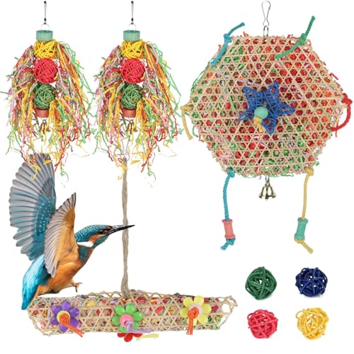 3-teiliges Seilnetz-Set für Vögel, Kletterhängematten & Schaukeln für Papageien, Kleintiere und Haustiervögel