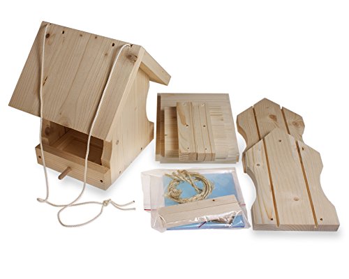Vogelhaus selber bauen - Ein Spaß für Groß und Klein. Bausatz aus unbehandeltem Fichtenholz aus Deutschland (PEFC zertifiziert). Der ideale Vogelfutterspender für den Garten Dekoratives und stabiles Vogelhaus zum Aufhängen im Garten oder auf dem Balkon. Im Hinblick auf den Rückgang des Bestands vieler Vogelarten ist ein Vogelhäuschen eine wichtige und wertvolle Ergänzung Sie erhalten einen Vogelhaus-Bausatz mit Bauteilen aus Fichtenholz und Plexiglas. Für den Bau Ihrer eigenen Vogelfuttersattion benötigen Sie zusätzlich Holzleim und einen Torx 10 Schrauber Ideale Futterquelle für heimische Vögel wie Rotkehlchen, Fink, Amsel und viele mehr. Das Vogel Futterhaus bietet verstellbare Futteröffnungen für grobes und feines Futter. Schadstoffgeprüft Vogelfutterhaus zum Aufhängen an Bäumen oder stabilen Ästen. Das entstehende Vogelhaus hat Maße von etwa 24cm x 20cm x 14cm. Ideales Vogelfutterhäuschen auch für kleinere Gärten