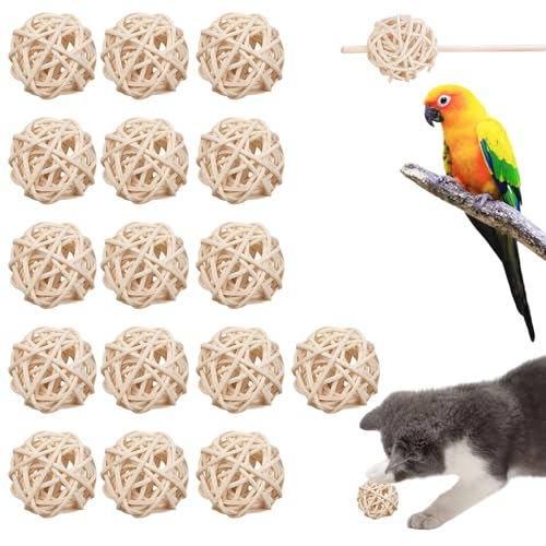 Symphonyw 16 Stück Rattan Bälle, 1,18 Zoll Wicker Ball Haustier Vogel Kauspielzeug, Haustier Biss Ball für Wellensittiche Conures Hamster Bunny Spielzeug Crafts Hanging DIY Dekoration Zubehör