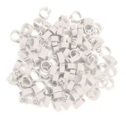WAONIQ 100 Stück Taubenvogel Beinbänder, Ring 001–100, nummeriert, 8 mm, Kunststoff Identifikations Beinbänder, Fußbänder, zum Anklemmen an Beinringe für Vögel, Hühner (Weiß)